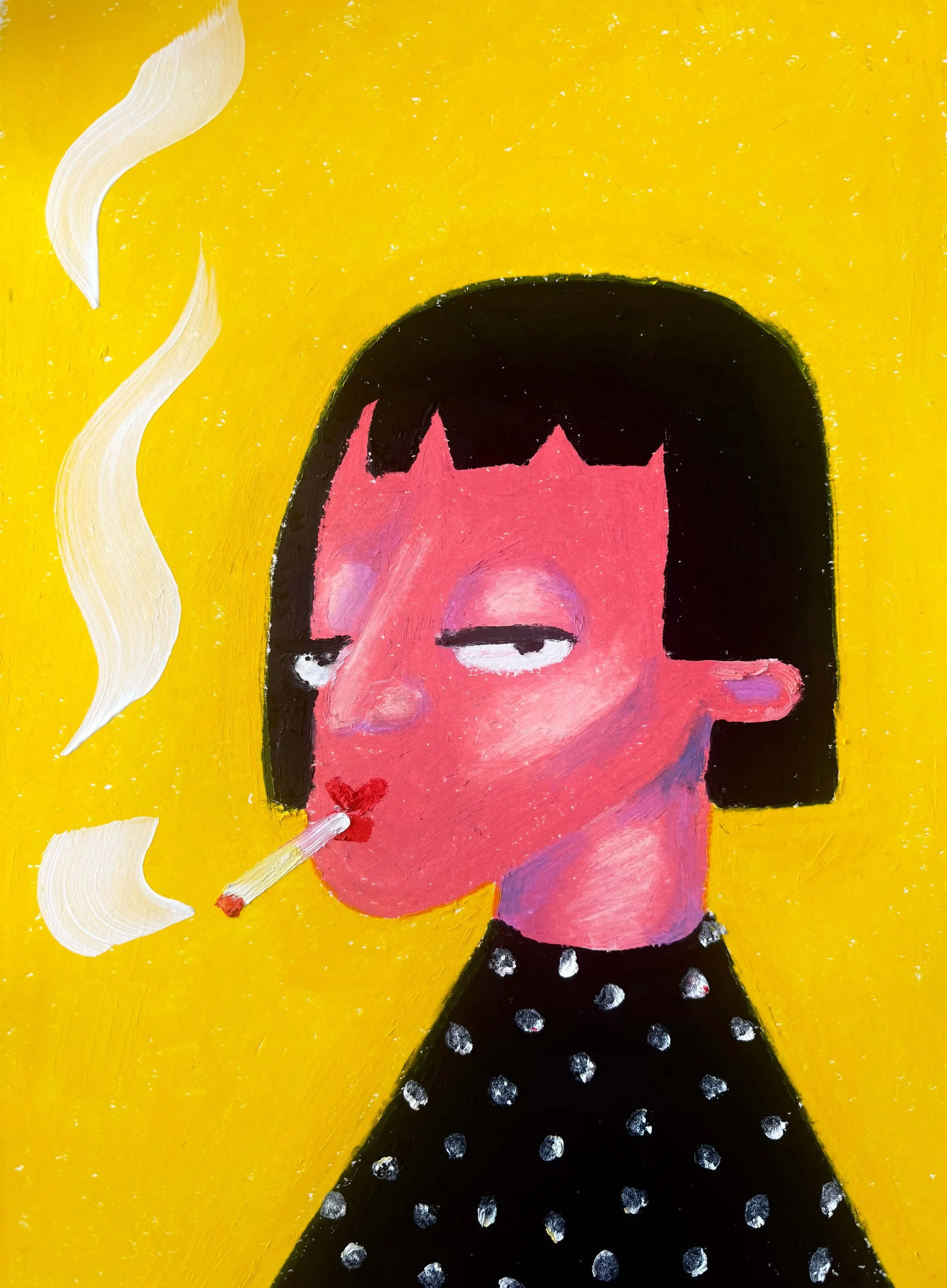 This then lends itself back to her style through her curiosity about who they might be, “most of my portraiture work has an almost dark feeling to it as a natural result of my unknowing. But because I use colours that are so bright your eyes might fall out, lots of people first claim the work as ‘cute.’ I don't mind this comment at all though. I love contrast. Not only in visual work but in thought.”